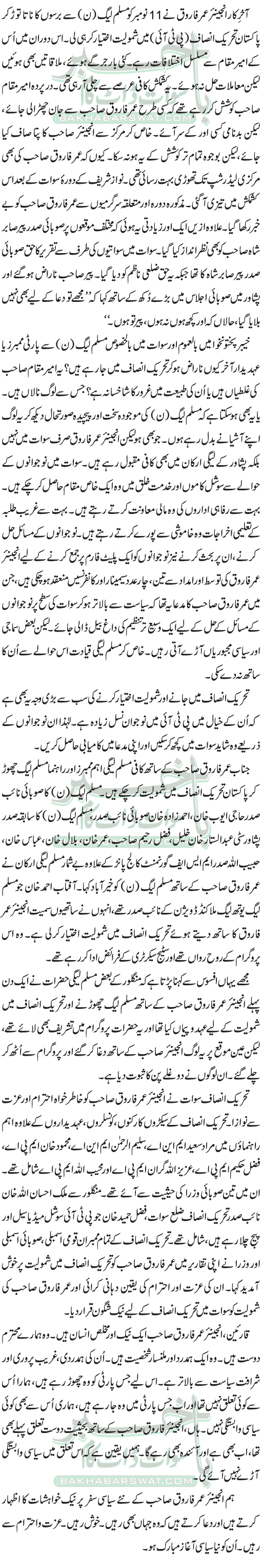 انجینئر عمر فاروق کا نیا سیاسی سفر کالم :روح الامین نایابؔ