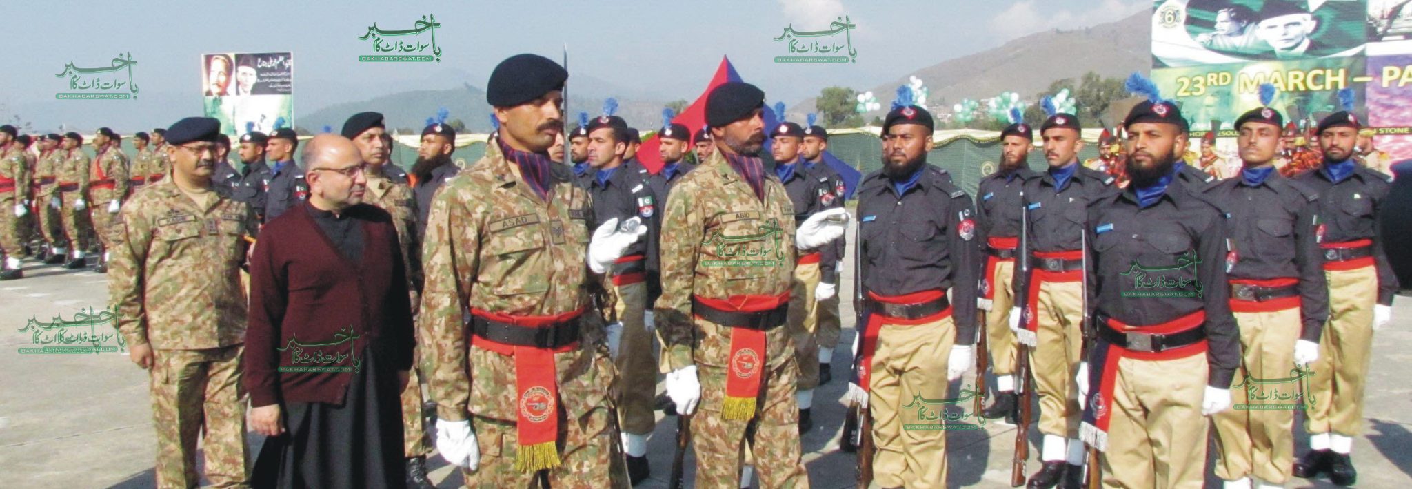 (باخبر سوات ڈاٹ کام) سوات میں بھی یو م پاکستان جوش و جذبے سے منایا گیا ۔ سب سے بڑی تقریب بریگیڈ ہیڈ کوارٹر کانجو میں منعقد ہوئی، جس کے مہمان خصوصی کمشنر ملاکنڈ ڈویژن سید ظہیر اسلام تھے۔ تقریب میں مہمان خصوصی اور برگیڈئیر کاشف نوید نے مارچ پاسٹ کا معائنہ کیا اور دستوں سے سلامی لی ۔ اس موقعہ پر انہوں نے پاک فوج میں ترقی پانی والے افسران کو ترقی کے بیج لگائے ۔ ودودیہ ہال سیدو شریف میں بھی یوم پاکستان کی تقریب منعقد ہوئی، جس میں ضلع ناظم سوات محمد علی شاہ خان ، ڈپٹی کمشنر شاہد محمود ، ڈی پی او کیپٹن (ر) واحد محمود اور دیگر نے شرکت کی ۔ سیدو شریف میں یوم پاکستان کے موقعہ پر فری میڈیکل کیمپ بھی لگایا گیا ۔ سوات پولیس کی جانب سے یوم پاکستان کے موقعہ پر فلیگ مارچ کیا گیا