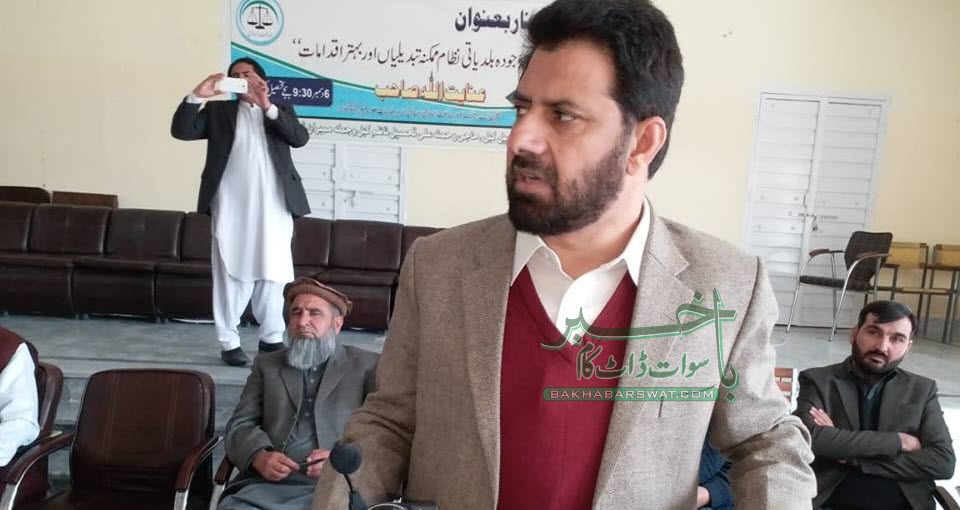 سوات   (باخبرسوات ڈاٹ کام)    سابق سینئر وزیر و ایم پی اے عنا یت اللہ خان نے کہا ہے کہ جس ملک میں بلدیا تی نظام مستحکم ہو، وہا ں لو گوں کو بنیادی سہولیات دینے میں آسانی پیدا ہو تی ہے۔ بلدیا تی نظام کا مقصد ہے اختیارات کو نچلی سطح تک منتقل اور لوگوں کو گھر کی دہلیز پر انصا ف فراہم کرنا۔ موجودہ وقت میں بلدیا تی نظام کا جو ڈھا نچہ بنا یا گیا ہے، وہ موجودہ حکومت کے لئے بد نامی کا سبب بن رہا ہے۔ بلدیا تی نظام کے لئے تمام پارٹیاں مل کر تجاویز پیش کریں گی۔ عمل نہ ہونے کی صور ت میں اسمبلی کے فلور پر آواز اُٹھائیں گے۔ اگر ہمیں نہیں سنا گیا، تو عدالت سے رجوع کرنے کا آپشن موجود ہے۔ انہوں نے کہا کہ مختلف پارٹیوں کے لوگ مل کر ایک کمیٹی کی شکل میں تجاویز لکھیں۔ وزیر اعلیٰ KPK کے پا س جا کر صورتحا ل اور تجاویز سے انہیں آگا ہ کیا جائے۔ ان خیا لا ت کا اظہار انہوں نے گذشتہ روز گورنمنٹ ہائیر سیکنڈری سکول کبل میں بلدیا تی نظام کی بہتری کے لئے تجاویز دینے کے حوالے سے بلدیا تی نمائندوں، سیا سی مشران کے ایک منعقدہ سیمینار سے خطاب کے دوران میں کیا۔
