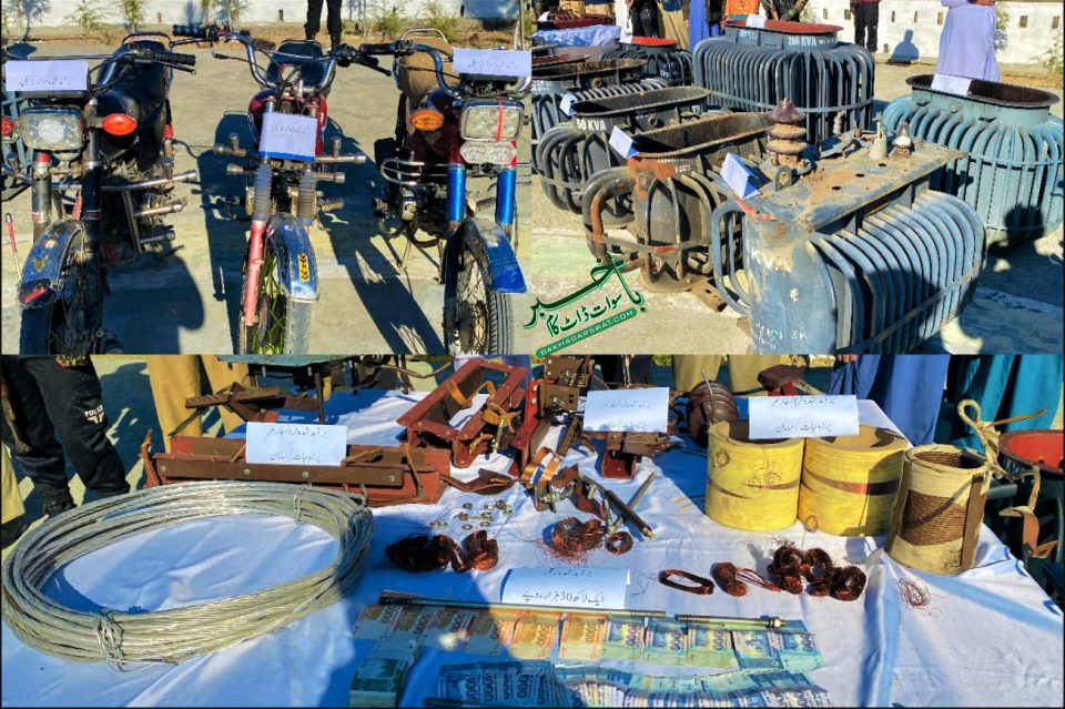 (باخبر سوات ڈاٹ کام)سوات کے مختلف علاقوں سے بجلی ٹرانس فارمر چوری کرنے والے ملزمان کو پولیس نے گرفتار کرکے ٹرانس فارمر برآمد کر لئے۔ اس سلسلے میں تھانہ چپریال مٹہ میں ڈی پی اُو شفیع اللہ گنڈا پور نے پریس کانفرنس کرتے ہوئے کہا کہ پولیس کو اطلاع موصول ہوئی کہ مسمی شیر زمان ولد سر بلند ساکن اونڑ چپریال فوت ہو چکا ہے۔ لاش کو پوسٹ مارٹم کے لئے ہسپتال لے جا کر متوفی کی موت کی وجوہات معلوم کرنے کے لئے انکوائری شروع کی۔ ابتدائی تفتیش کے دوران متوفی کے قریبی دوست مسمی شجاعت علی ولد پائندہ خان ساکن تارے کو سرسری انٹاروگیٹ کیا گیا، جس نے دوران انٹاروگیشن اپنے دیگر ساتھی متوفی شیر زمان اور صاحب زادہ ولد دوشم خان ساکن دندڑئی کے ہمراہ مختلف جگہوں سے ٹرانس فارمر اتار کر اس کے اندر سے قیمتی پرزے چوری کر کے کباڑی مسمی یحییٰ ولد روزی ساکن چپریال پر فروخت کرنے کا انکشاف کرتے ہوئے کہا کہ مورخہ 24 دسمبر کی رات بمقام شیر پلم بوقت شب 02 بجے ہم ٹرانس فارمر چوری کرنے کی پلاننگ سے وہاں گئے ہوئے تھے کہ متوفی شیر زمان کھمبا چڑھتے ہوئے کرنٹ لگنے سے فوت ہوا تھا جس کی لاش کو میں دیگر ساتھی صاحب زادہ کے ہمراہ موٹر سائیکل کے ذریعے ان کے گھر کے قریب پھینک آئے تھے۔ چپریال نے پولیس ٹیم کے ہمراہ مزید کارروائی کرتے ہوئے واردات میں ملوث کباڑی یحییٰ کو بھی گرفتار کیا جس کی نشاندہی پر 09 عدد ٹرانس فارمر باڈی(کور) اور دیگر پرزہ جات، آدھا بنڈل مین لائن تار، 03 عدد موٹر سائیکلیں اور مبلغ 01 لاکھ 30 ہزار روپے برآمد کرلئے گئے۔