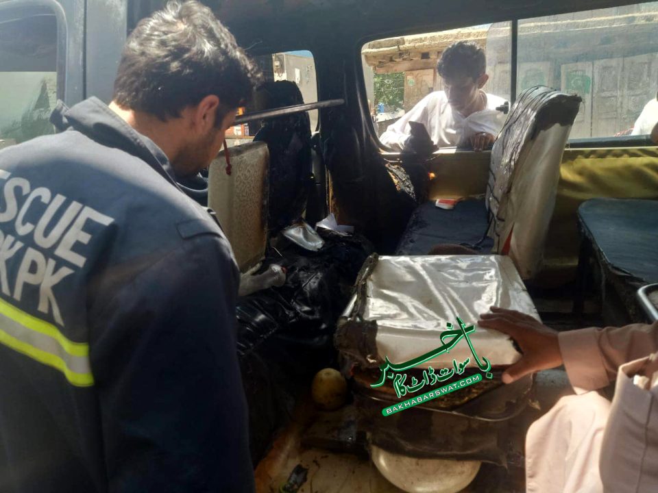 (باخبر سوات ڈاٹ کام)مدین بازار خواہ خیلہ سٹینڈ میں سواریوں سے بھری فلائنگ کوچ میں اچانک آگ لگ گئی۔ آگ لگنے سے گاڑی میں موجود چار افراد جھلس گئے۔ پولیس کے مطابق نامعلوم وجوہات کی بنا پر لگنے والی آگ زربخشہ زوجہ نور حسن 50 سال عمر، مینال دختر سید رحیم شاہ 2سال عمر،سید ایان ولد سید رحیم،شازیہ زوجہ سید رحیم جھلس کر زخمی ہوئے، جنہیں طبی امداد کے لئے سول ہسپتال مدین منتقل کردیا گیا۔