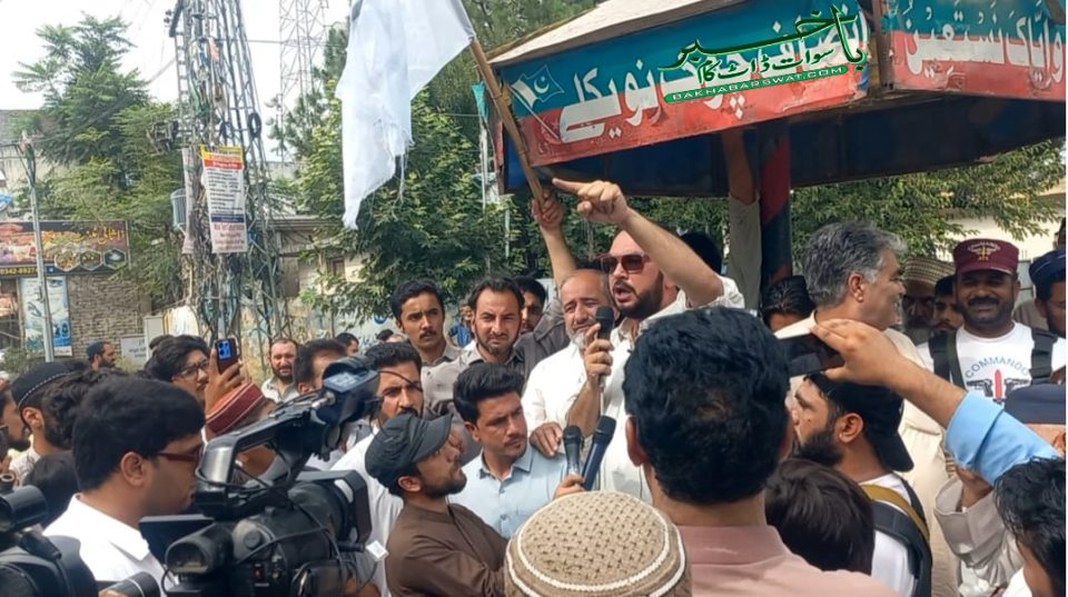 (باخبر سوات ڈاٹ کام)  مینگورہ میں جس پولیس چیک پوسٹ پر حملہ کیا گیا تھا، جمعرات کو یوتھ آف سوات نے اس کے سامنے دہشت گردی کے خلاف اور پولیس سے اظہار یکجہتی کے لئے مظاہرہ کیا گیا۔ مظاہرہ میں سٹی میئر شاہد علی خان اور یوتھ آف سوات کے صدر سعد خان نے بھی شرکت کی۔ مظاہرین سے اپنے خطاب میں مقررین نے کہا کہ ہم کسی بھی صورت سوات میں دہشت گردی برداشت نہیں کریں گے اور پولیس کے ساتھ شانہ بشانہ کھڑے رہیں گے۔ انہوں نے کہا کہ پولیس سوات میں ان دہشت گردوں کا سراغ لگا کر ان کو انجام تک پہنچائے۔